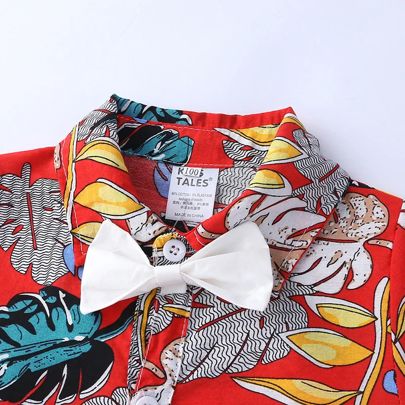 [Стиль] разноцветный Детский комбинезон с цветочным принтом для мальчиков; Летняя одежда с короткими рукавами