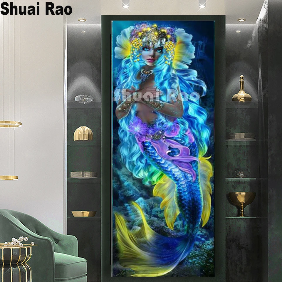 Удивительная картина с бриллиантами, голубая Русалка, красота, большая Алмазная вышивка, стежок, алмазная головоломка, эльф, полный 5d diy,