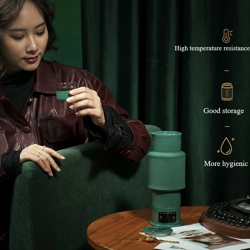 Оснащен чайной чашкой, может быть помещен в чайник для удобного хранения