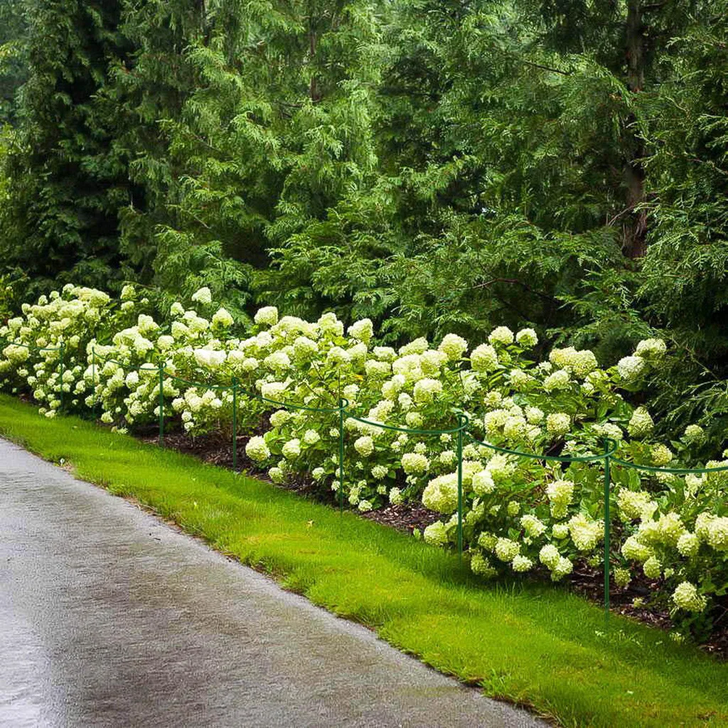 Поддерживают здоровый рост растений, эффективно предотвращают распространение лозы, защищают растения от сильного ветра, сильного дождя или их собственных больших цветов в цвету, формируют аккуратный и упорядоченный край, И сохраняют проход ровным.