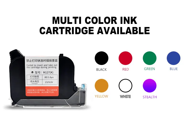 Модель: AJX-N127 Вес: 1,5 кг Размер упаковки: 31*20*18 см Высота печати: 2-12,7 мм регулируемый Тип чернил: на водной основе/быстросохнущая Точность печати: 600DP Интерфейс передачи данных: USB Управление панель: 4,3 дюймовый сенсорный экран Печатные материалы: трубы, кабели, медицина, упаковка, стекло, металл и т. Д. Содержание печати: текст, символы, qr-код, штрих-код, изображение, дата, серийный номер и т. Д.