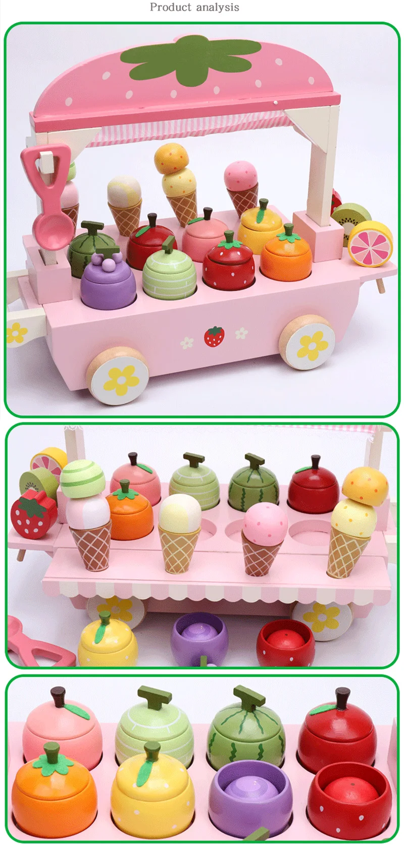 Новинка, 1 комплект, деревянная игрушка, имитация игрушки для ролевых игр, магнитное мороженое, красочная кухня, еда, детская игрушка, еда, подарок на день рождения D2