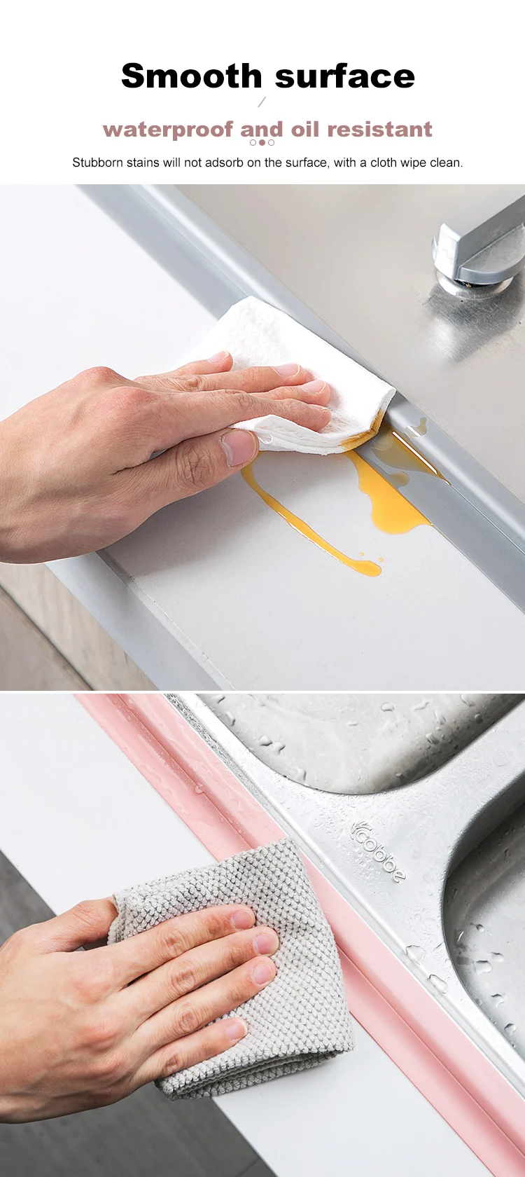 1. Usually the sink is fixed on the table by silicone, after a long use, water stains will permeate into silicone, so the silicone will go mouldy and blacken. This water proof, mould proof tape be sticked on the seam crossing between gas cooker and table, sink and table, it can keep your place look great, and easy to clean