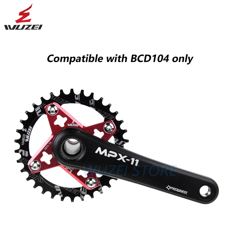 Бренд: wuzei Материал: алюминиевый сплав 7075-t6 Толщина: 5 мм Вес: справочная карта атрибутов Цвет: синий/красный/черный/зеленый/желтый/фиолетовый Pacakge включает: 1 шт. адаптер-паук Преобразование Sram GXP в BCD104 Примечание: этот товар может использоваться только в системе 1 x, с одной скоростью. Вы можете изменить этот адаптер spider Sram GXP crank be BCD104, с одной скоростью.