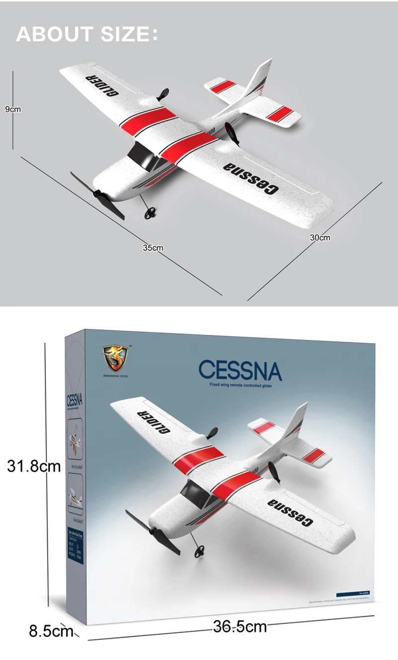 Функция: движение вперед, вверх/вниз, поворот влево/вправо Название продукта: Z53 планер дистанционного управления (Cessna 182T) Размер изделия: 35*30*9 см Батарея планера: 3,7 V 300mAh Li-po батарея Батарея контроллера: 3*1,5 В АА батарейки не включая Время зарядки: около 40 минут, время полета: около 25 минут Расстояние управления: около 100 метров Материал планера: EPP Цвет Коробки Технические характеристики: около 36,5*8,5*31,8 см Вес одного планера: около 32 г
