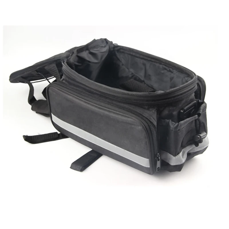 На основной сумке есть светоотражающие полосы и боковой карман для улучшения видимости при ночной езде.