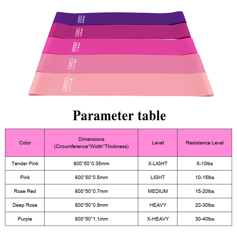5 упражнения эластичных лент на strengths-0.35mm (10lbs), 0,5 мм (15lbs), 0,7 мм (20lbs), 0,9 мм (30lbs) и 1,1 мм (40lbs).