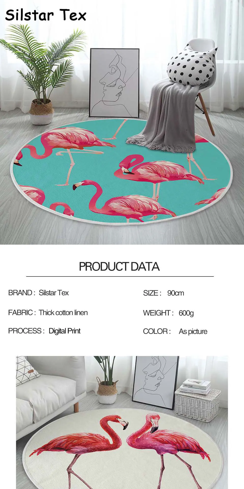 Silstar Tex Flamingo, круглый ковер для спальни, современный хлопковый ковер с принтом, коврик для детской комнаты