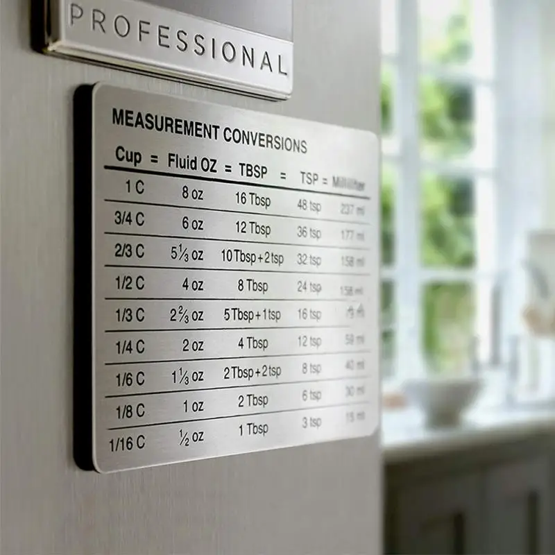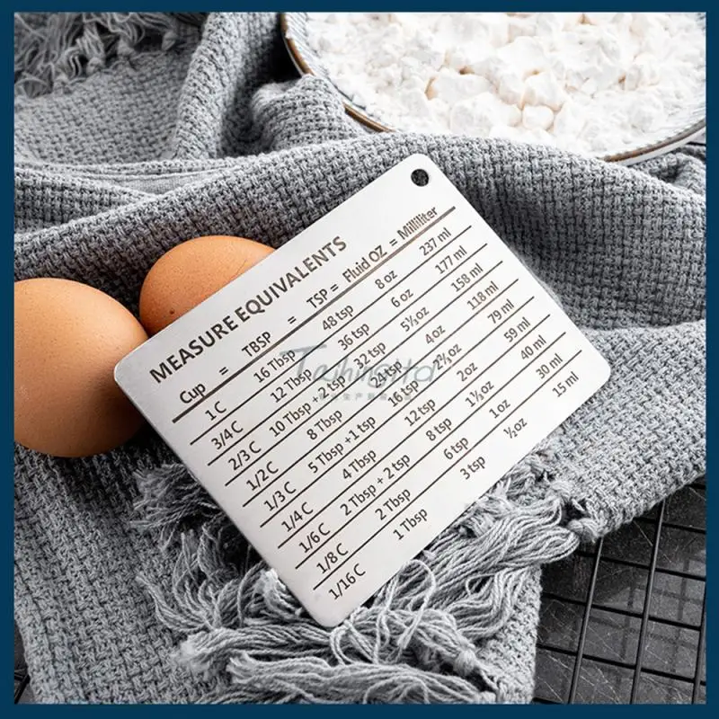 Он выгравирован с помощью таблицы преобразования единиц, которая обычно используется для выпечки.