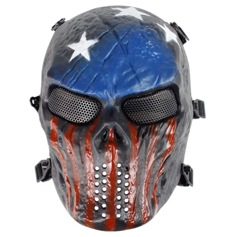 Маска с черепом обеспечивает полную защиту лица для страйкбола и других видов спорта на открытом воздухе.