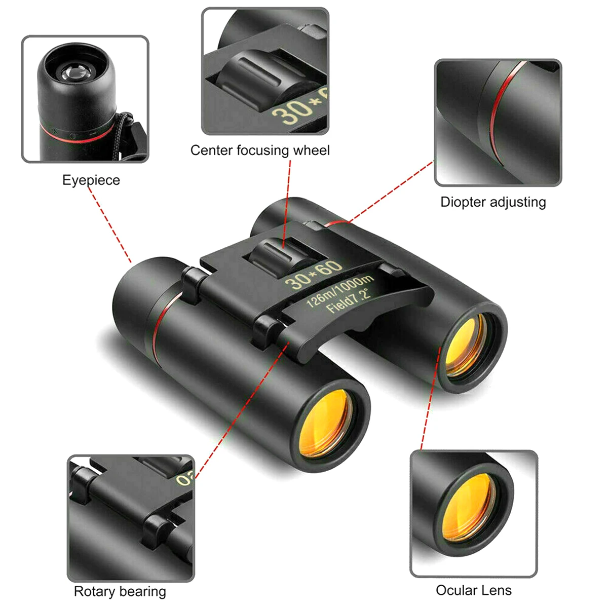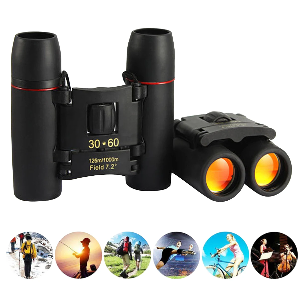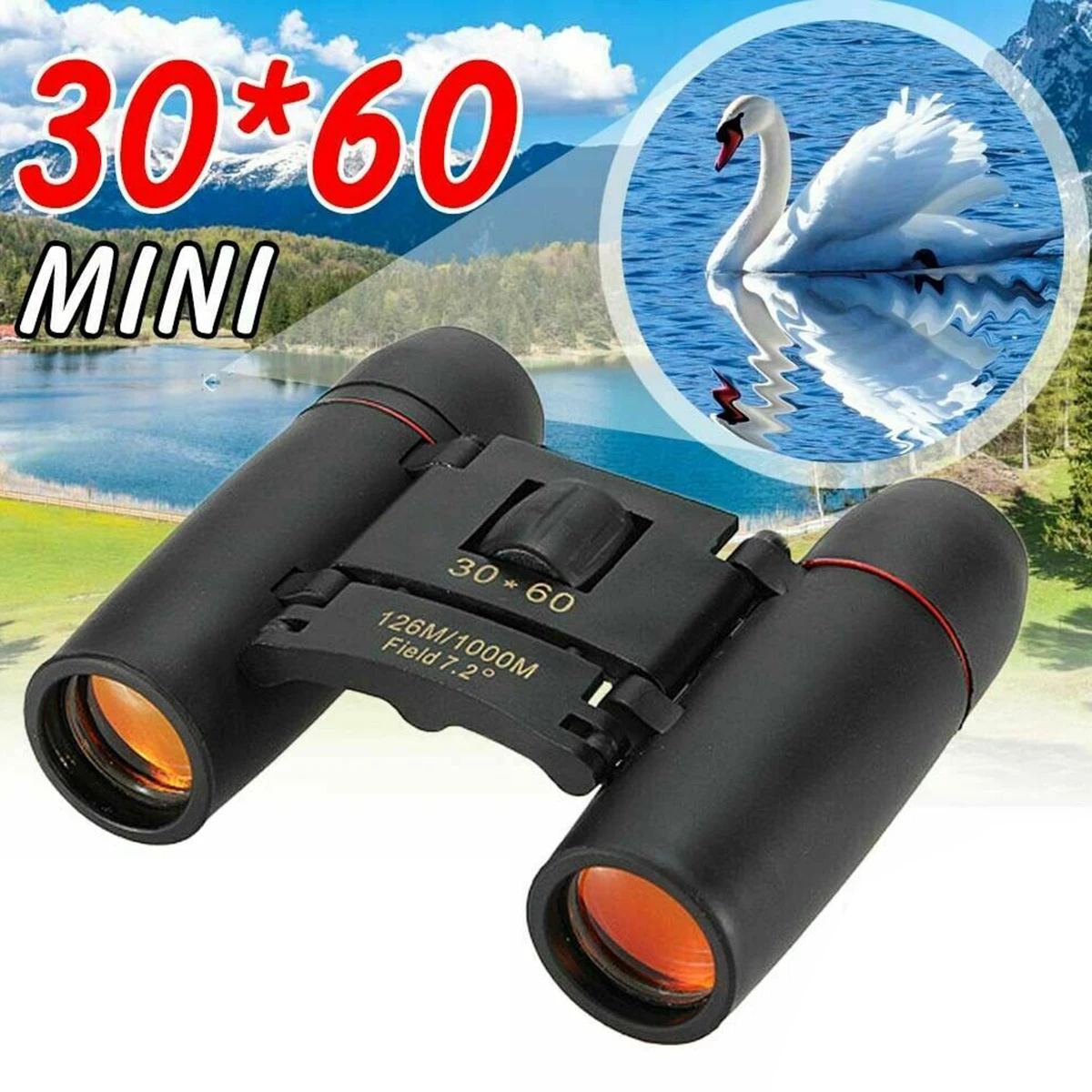 30x60 зум телескоп Компактный складной бинокль Крыша Призма карман с чехлом для переноски кемпинга
