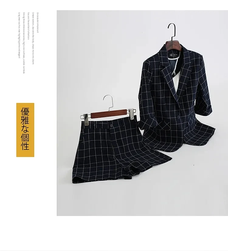 Женский блейзер оверсайз, клетчатый пиджак, модный Женский блейзер + брюки, женский короткий костюм, женский комплект из двух предметов, женский укороченный топ