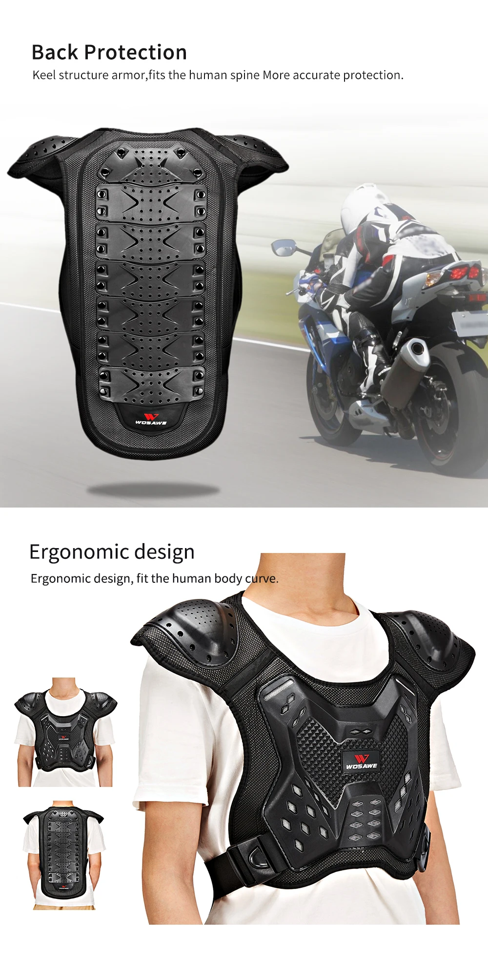 WOSAWE взрослый защитный костюм для беговых лыж велосипед Защита для груди спины Утолщенная оболочка из пэ и Вспененные материалы EVA в большей степени защищают грудь, спину, позвоночник и плечи Характеристики продукции: Защитный чехол из полиэтилена Амортизирующий материал EVA Приятная и гладкая внутренняя ткань Несколько вентиляционных отверстий в защитной оболочке Эффективно защищают грудь, спину, позвоночник, плечи Устройство для защиты спины подходит для человеческого тела и может сгибаться Регулируемая пряжка с обеих сторон удобнее носить Посылка: доспехи для взрослых-1 шт. Спецификация: Наименование: броня для взрослых Материал: ПЭ, Эва Цвет: черный Вес: (M) около 639 г/1,41 фунта Размер: S, M, L Пол: унисекс Применение: мотокросс, велосипед, лыжи, Катание на роликах, катание на коньках и другие виды спорта на открытом воздухе