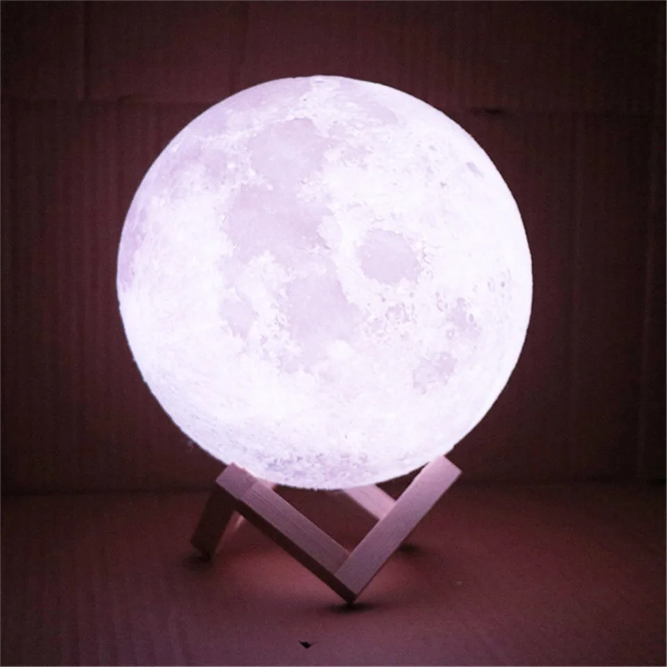 Технические характеристики Название продукта: лампа с 3D принтом Луны Материал: PLA Производственный процесс: настоящая 3D печать Светильник источник света: светодиодный Цвет: A:2 цвета s touch, белый светильник/желтый светильник B : 3 цвета белый светильник/желтый светильник/Теплый светильник C:16 цветов с пультом дистанционного управления. Время зарядки: 2-4 часа Время работы: 8-10 часов (зависит от яркости) Источник питания: USB DC:5V /1A Как использовать 1. Коснитесь металлического кольца в нижней части лунной лампы, чтобы включить/выключить светильник и изменить цвет. Три цвета нажатия: вы можете погладить лампу Луны, чтобы переключить цвет света 2. Нажмите на металлическое кольцо для регулировки яркости. 3. Вставьте разъем постоянного тока в металлическое кольцо в нижней части лунной лампы для зарядки, красный светильник всегда включен во время зарядки. Красный светильник автоматически выключается при полной зарядке. 4,16 цветов с 24 кнопками дистанционного управления может управлять лунной лампой. 5. Если ваша рука слишком сухая или температура слишком низкая, светильник может не отвечать. 6. Если светильник не включен, вы можете попробовать зарядку в течение 1-2 часов. Или интересно, подстраивается ли светильник под самую темную яркость.