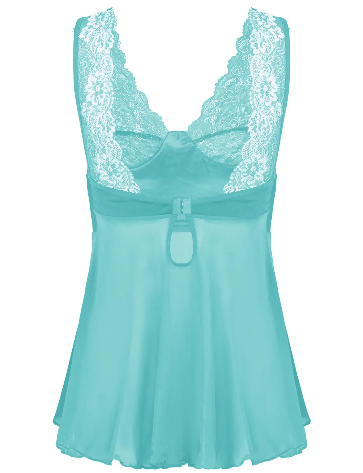 Сетчатый прозрачный дизайн, кружевные цветочные плечевые ремни и глубокий v-образный вырез, задняя часть с 2x3 крючками и закрытыми глазами.