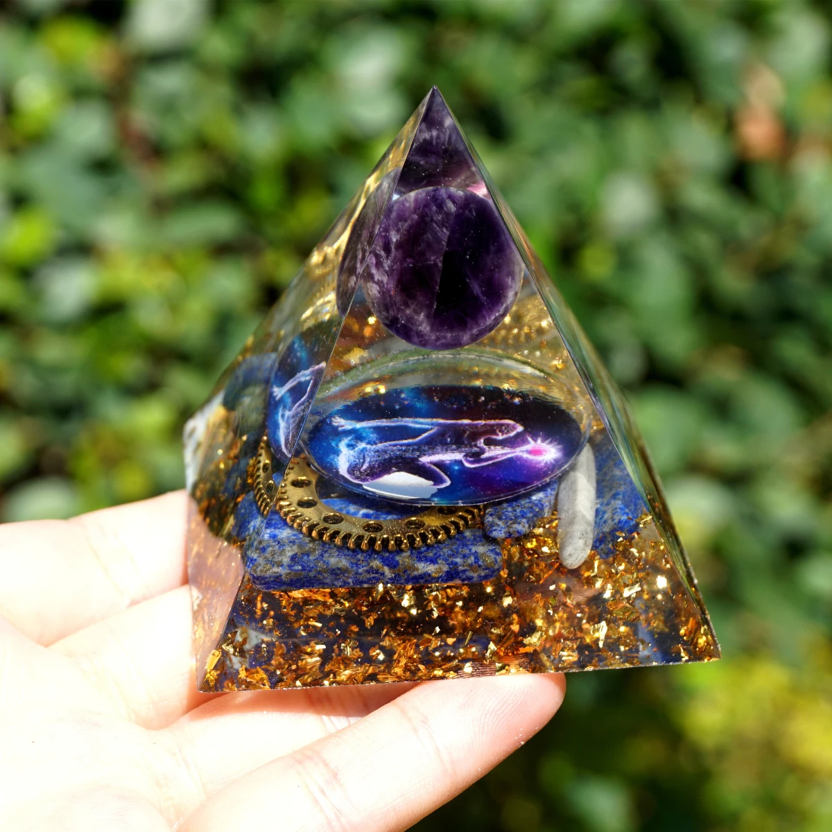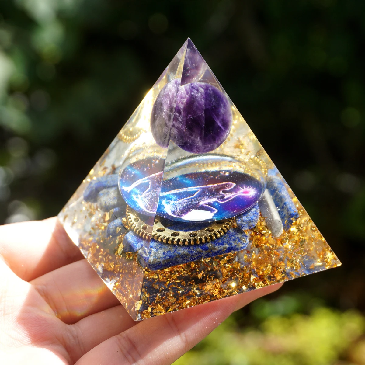 Оргонит Пирамида Аметист кристальная сфера и Лазурит с защитой от ЭМП Шестерня Orgone Пирамида кристалл Исцеление Рейки Медитация