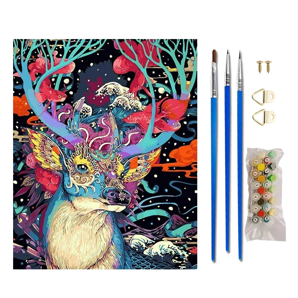 (1 * Холст, 1 * краска, 1 * Руководство, 2 * крючок, 3 * кисть, 2 * обод)